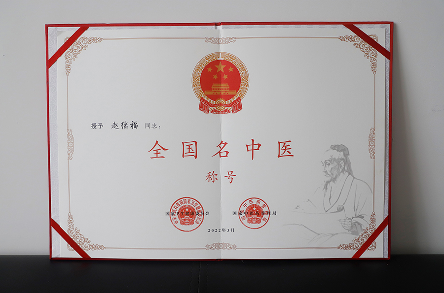 2022年7月20日,国家人力资源社会保障部、国家卫生健康委、国家中医药管理局以电视电话会议形式举行国医大师、全国名中医表彰大会,德州扑克平台网 赵继福教授荣获第二届“全国名中医”称号。