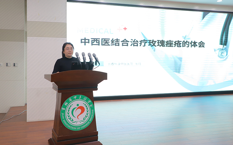长春恒康中医德州扑克平台 皮肤科疗区主任张阳为大家带来了以《中西医结合治疗玫瑰痤疮的体会》为主题的报告。