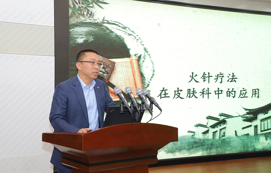 吉林省中医药学会皮肤病专业委员会主任委员、德州扑克平台网 总部皮肤科主任王强结合临床经验和中医辨证论治理念,为大家分享了《火针疗法在皮肤科中的应用》。