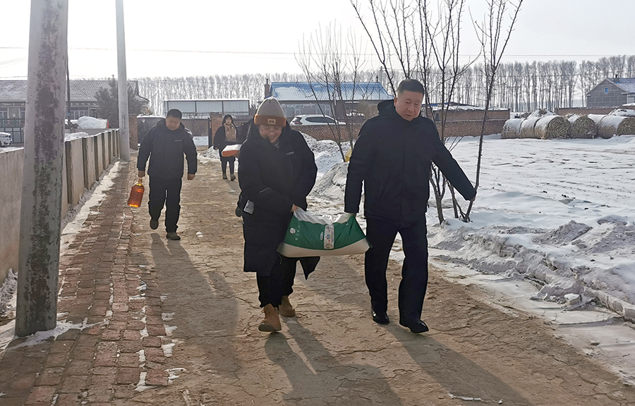 严寒的腊月里,慰问组一行不畏寒冷,走进了村民家中,为他们送去了大米、面粉、挂面、豆油等生活物资。这些物资不仅为村民提供了物质上的帮助,更为他们送去了节日的温暖和关爱。