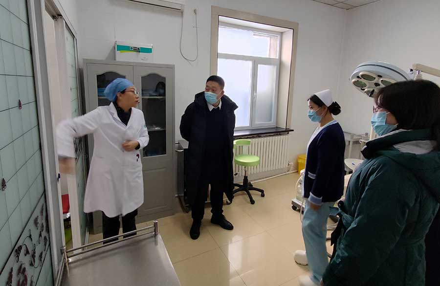 在平阳部,石贵军院长分别到疗区、门诊、伙食科、氧气间等地进行调研指导,特别对急诊急救药物储备、氧气房日常工作、卫生问题以及消防、供暖等后勤工作提出要求,并对医疗安全工作进行实地督导检查。