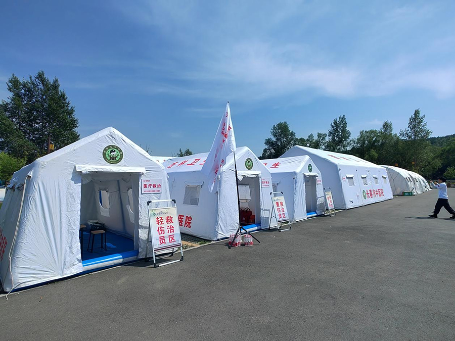 演练现场,德州扑克平台网救援队抵达“灾区”后,立即投入营地搭建工作。指挥帐篷、分诊帐篷、救治帐篷、物资帐篷等迅速搭建完毕,形成了一套完整的医疗救治体系。营地布局合理,医疗与生活物资充足,能完成常见轻伤、危重伤的救治和转运工作,为接下来的救援工作奠定了坚实基础。