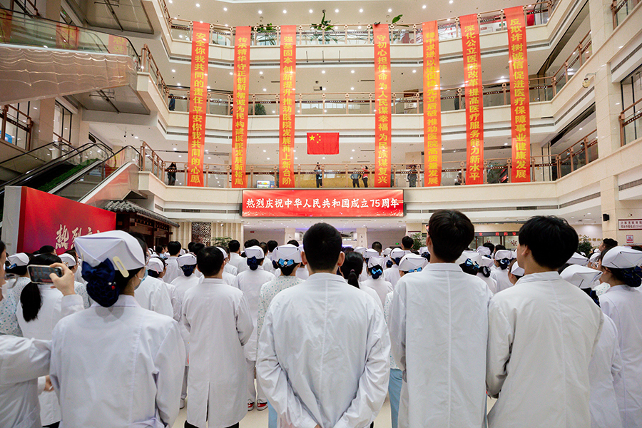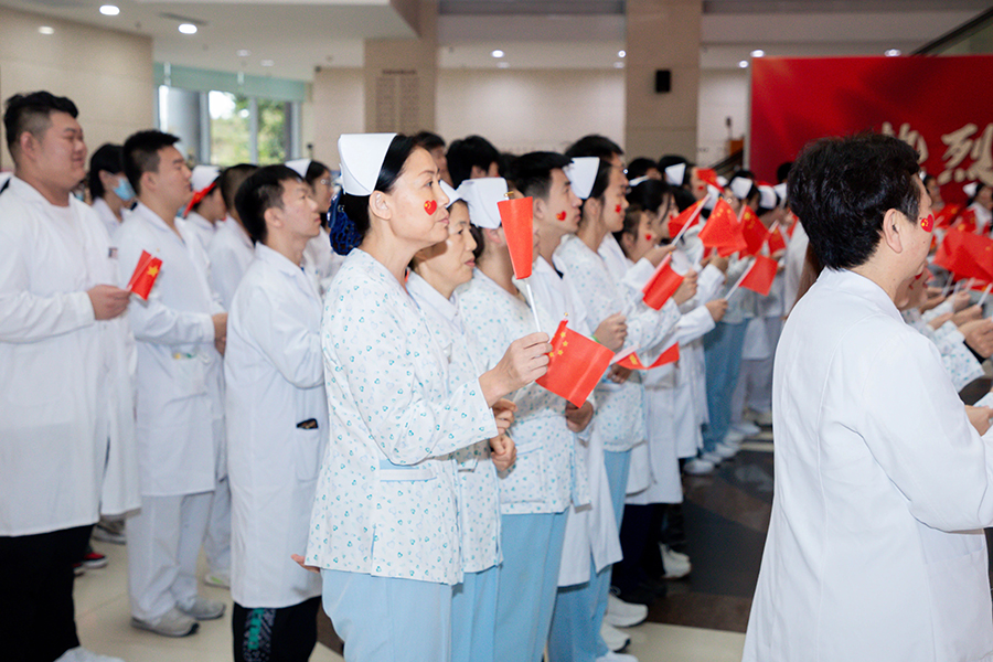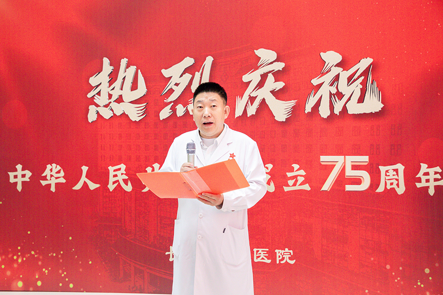 仪式开始前,石贵军书记发表了热情洋溢的讲话。他表示,今年是德州扑克平台网 建院70周年,在党的领导下,德州扑克平台 从当初简陋的医疗条件发展到如今拥有高耸的大楼和先进的医疗设备;从曾经有限的中医技术到如今不断创新突破、勇攀医学高峰;从单一的服务模式到如今全方位、人性化服务体系的完美蜕变。这些成绩的取得离不开党的坚强领导和全院干部职工的共同努力。他希望通过此次升旗仪式进一步激发全院干部职工的爱国热情和工作激情,为推动德州扑克平台 高质量发展、建设健康中国注入源源不断的智慧和力量。