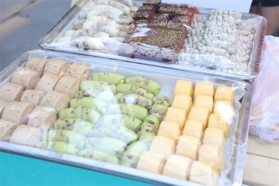 夜市里,中医特色产品的展示区人气最旺。代茶饮、美食、膏方、中药香囊、足浴包一应俱全,构筑起全方位养生场景。吉参能量饮提神、长夏养生茶除湿、延龄长春膏滋补、人参鸽子汤养元、酸梅汤生津,既养生又让深厚的中医药文化在味蕾间传承。