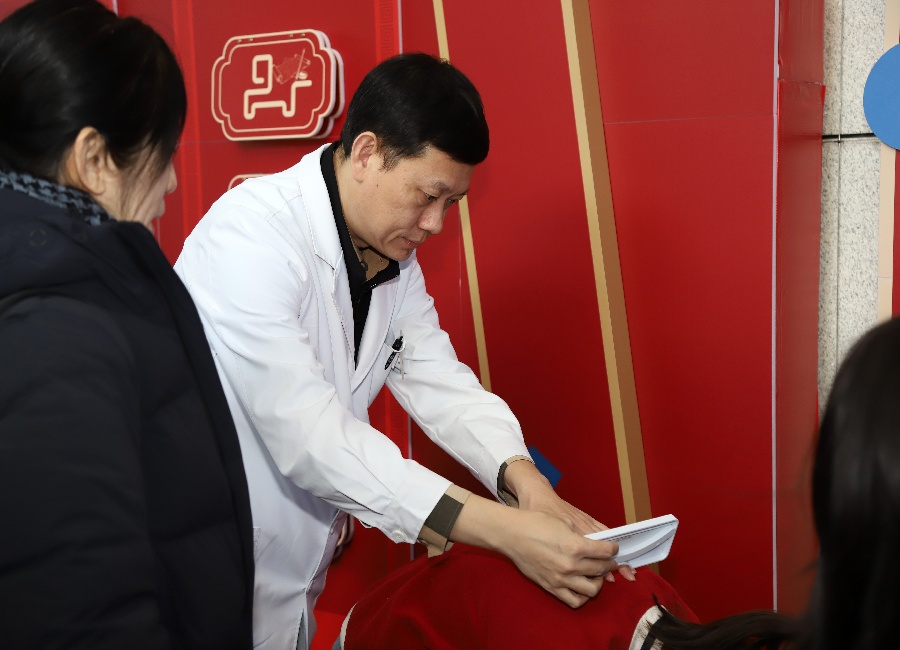 赵鹏主任耐心地为每一位前来体验的孩子进行脊柱侧弯筛查,手法专业而轻柔。他一边检查,一边向陪同的家长讲解青少年脊柱健康的常见问题与日常防护要点。