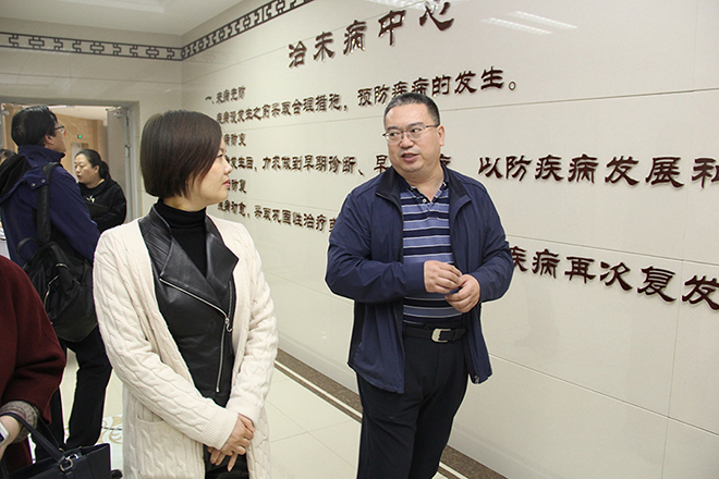 11月14日上午9点,博远祥祉圆万恩总经理带领团队如约来到德州扑克平台网 参观指导。孙良金院长热情地接待了他们,并带领他们从一楼中医特色文化、特色装饰、特色服务一一进行了讲解。