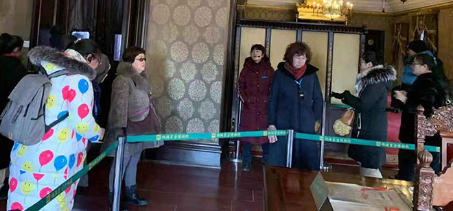 在两个多小时的时间里,党员们浏览了整个建筑,包括缉熙楼、勤民楼、怀远楼、植秀轩、畅春轩、宫内府、同德殿、嘉乐殿、书画楼等部分。在伪满皇宫博物院讲解员的引领下,党员们观看了伪满时期的文献、图片,回顾了日本帝国主义侵占东北,扶持傀儡政权推行殖民统治,奴役残害人民的罪行;同时也看到了东北人民在我党的领导下奋起抵抗直至最后取得胜利的历史场景。