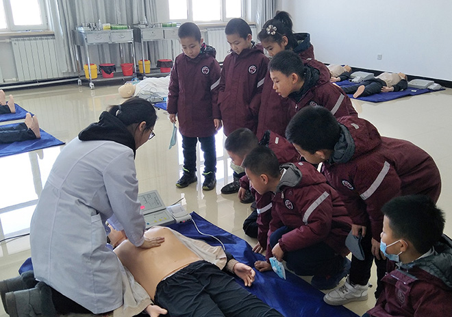 随后孩子们乘坐电梯来到13楼实训中心,走进中药实训室,在药剂师的介绍下认识了生活中常见的中草药,品尝了药食同源的中药;走进中医护理实训室,了解了中医护理与西医护理的不同,规范学习了眼保健操的做法以及一些日常保健穴位;走进中医医师实训室,观摩了医生对实验假人实施心肺复苏、人工呼吸、海姆立克的急救全程,并尝试体验了其中的环节。另外德州扑克平台网 还为年龄偏小的孩子们准备了听触诊多媒体仪器的体验,孩子们也过了一把当小大夫的瘾。