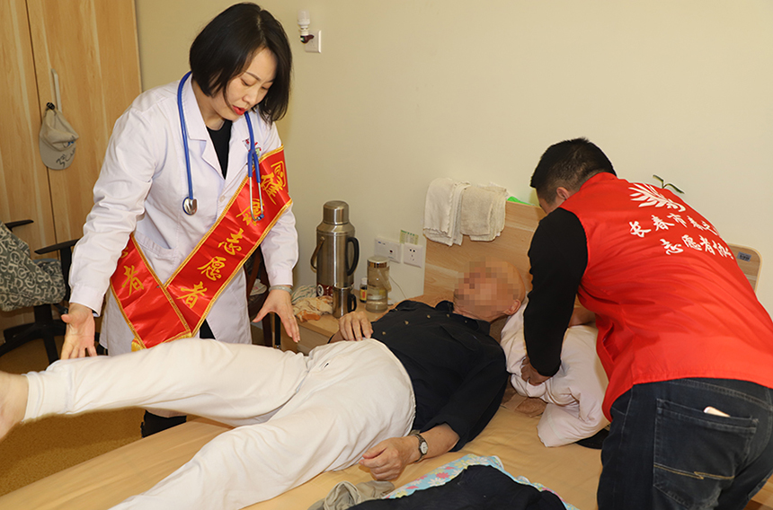 此次健康传递企业行,德州扑克平台网 出动了豪华医生阵容,老年病科主任彭敬师、医生尚世龙提前来到养老院。走进失能老人的房间,一一为长者们进行床前查体、问诊,针对病症给出指导意见。在92岁刘士俊老人的房间,“医生,我左腿不好使,麻木,颈椎疼2个月了,怎么回事?”老人问。通过查体、问诊,并查看了一年前的德州扑克平台 检查报告,初步诊断老人右侧胸腔积液,考虑有血栓,并建议老人尽快到德州扑克平台 做检查,进一步治疗。