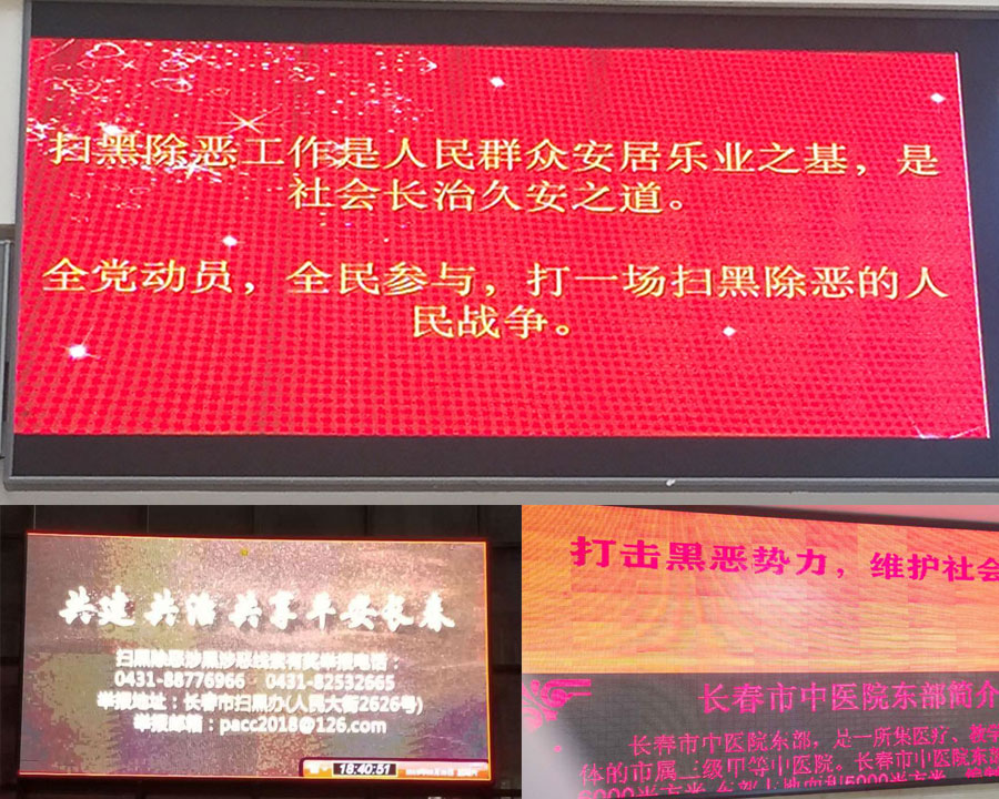 全院共编制扫黑除恶专项斗争宣传标语16条,悬挂扫黑除恶宣传条幅5条,张贴宣传海报6幅,LED屏幕、楼层电视终端滚动播放宣传片每日不少于120次,微信公众平台推送扫黑除恶专项斗争稿件13篇,推送72个微信群50多条扫黑除恶相关知识。