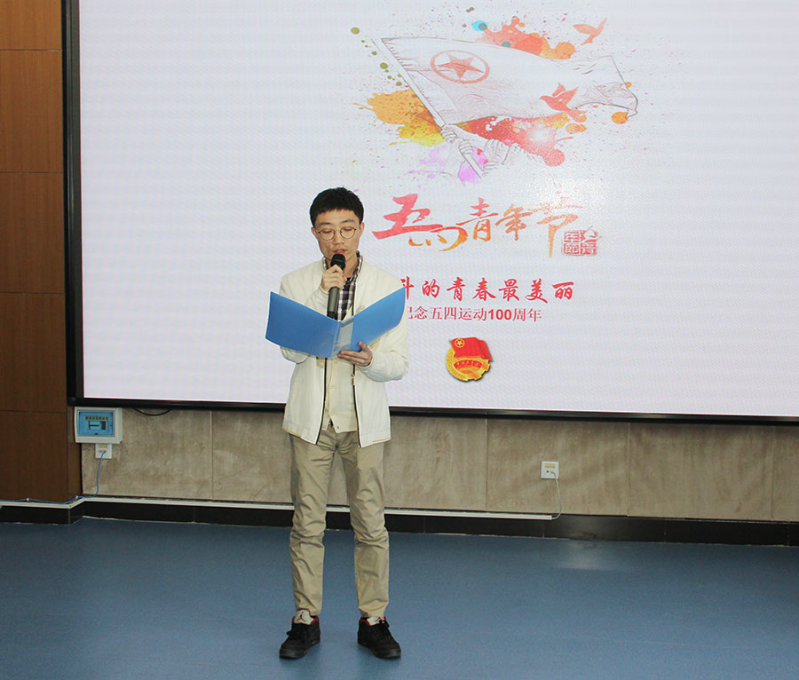 为纪念五四运动100周年,引导广大青年深入学习贯彻习近平新时代中国特色社会主义思想和党的十九大精神,继承和发扬五四精神,2019年4月28日下午,德州扑克平台网 特举办“青春心向党,建功新时代”纪念五四运动一百周年特别主题团日活动。此次主题团日活动由德州扑克平台 团委副书记毕海波主持,德州扑克平台 党委副书记周艳、各党支部书记及德州扑克平台 青年职工出席活动。