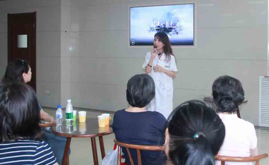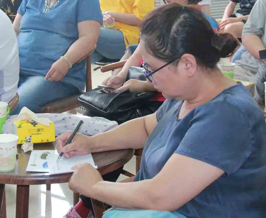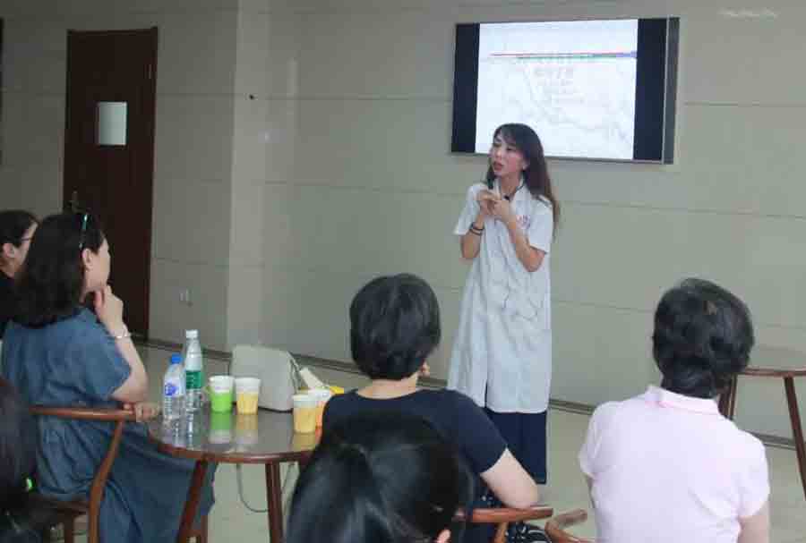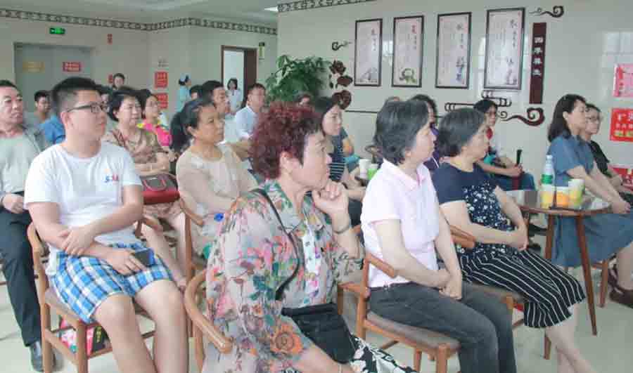 张主任说:“夏季饮食宜吃清淡质软、易于消化的食物,多吃新鲜蔬菜瓜果,多喝水、多喝粥、多喝汤如:三叶茶(薄荷叶、荷叶、淡竹叶)莲子山药粥“一荤一素一菇汤”......”现场的听众们被张主任精彩的讲座所吸引,有的听众用笔和手机记录下精彩的瞬间和知识要领......