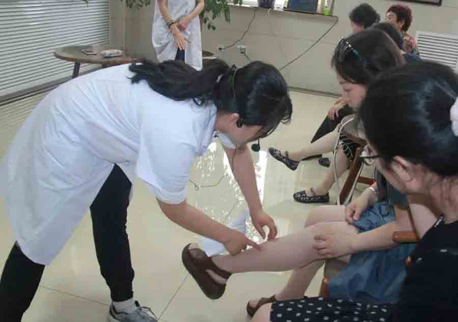 在做完手指操之后,王玲玲医生给大家普及了人体10大保健要穴以及找穴位的方法,市民们认真跟着王玲玲医生学按穴位,找穴位很困难,不知道怎么找,怕找错了,按错了,对身体造成伤害。大家不时地向老师提问“大夫,你看看我这是足三里穴吗?”“医生,您看我这三阴交穴按得准确吗?”现场的学习气氛十分浓厚。