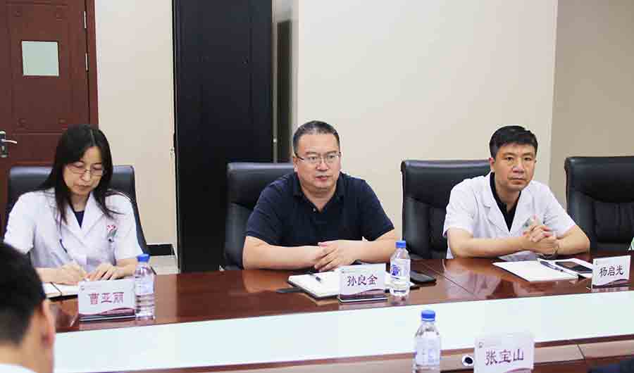 7月12日下午,长春市医疗保障局局长张宝山一行人来到德州扑克平台网 开展“不忘初心、牢记使命”调研工作,德州扑克平台网 党委书记、院长孙良金,副院长杨启光及相关科室负责人陪同调研。