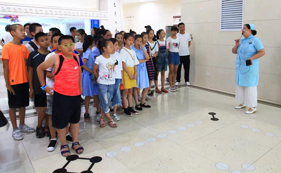 走进德州扑克平台网 一楼门诊大厅,便会看到醒目的地标图,从中医角度寓意着生命的起源。讲解员告诉同学们,人生于地,悬命于天,天地合气,命之曰人。古人认为天圆地方,契合此图外圆内方,图中生命万物皆包含于此。