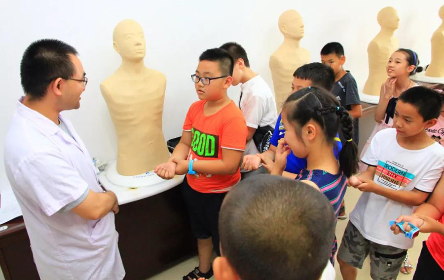 家长们听长春市名中医、治未病中心主任张春玲讲夏季如何养生,儿科医生手把手教授家长们如何为孩子做推拿,也让孩子们了解了手指操、针灸的功效。
