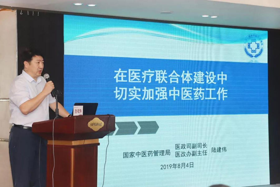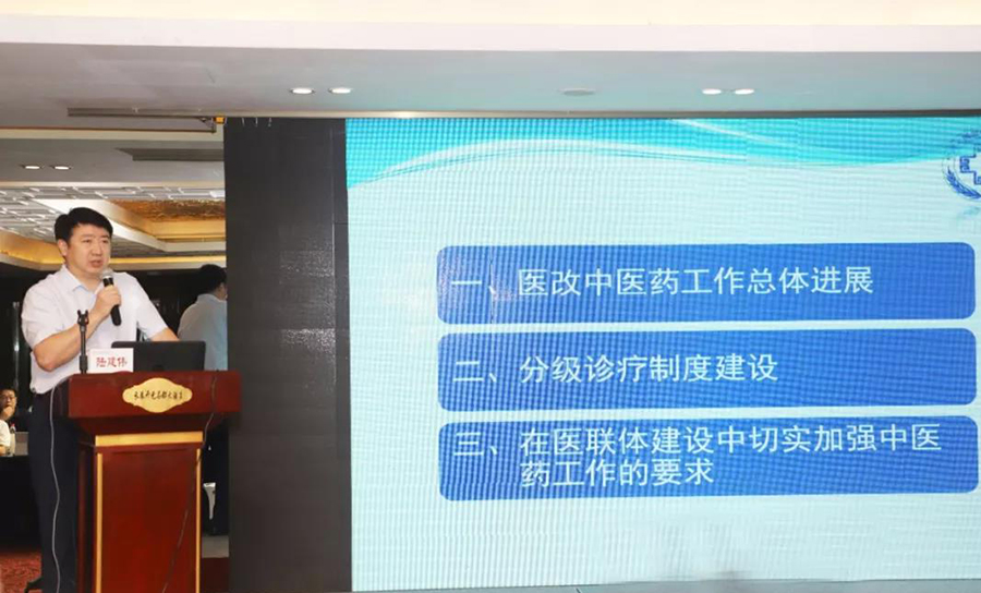 研讨会上,陆建伟副司长以《在医疗联合体建设中,切实加强中医药工作》为主题,从我国医改中医药工作总体进展、分级诊疗制度建设、在医联体建设中切实加强中医药工作的要求三方面进行论述。
