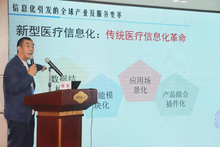 ▲福建省通信行业协会增值服务专业委会员主任委员柯权以《信息化和智能化在医联(共)体的重要作用与意义》为主题,为大家讲述了在医联体建设中,信息化和智能化起到的重要作用。