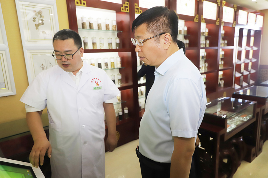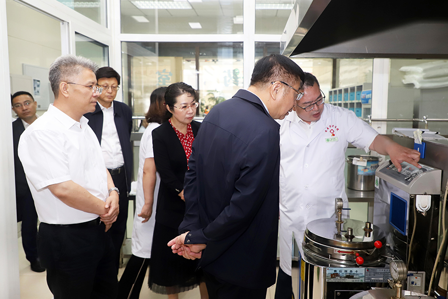 调研一行人先参观了德州扑克平台 的药房、煎药室,在药品展示台前孙良金院长详细介绍了中药的煎制流程,感受中药的制作技艺,当了解到中药自制剂的生产流通情况,对德州扑克平台 坚持采购道地取材的做法给予充分认可。