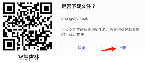 ◆打开手机浏览器扫描智慧杏林APP二维码下载进行安装