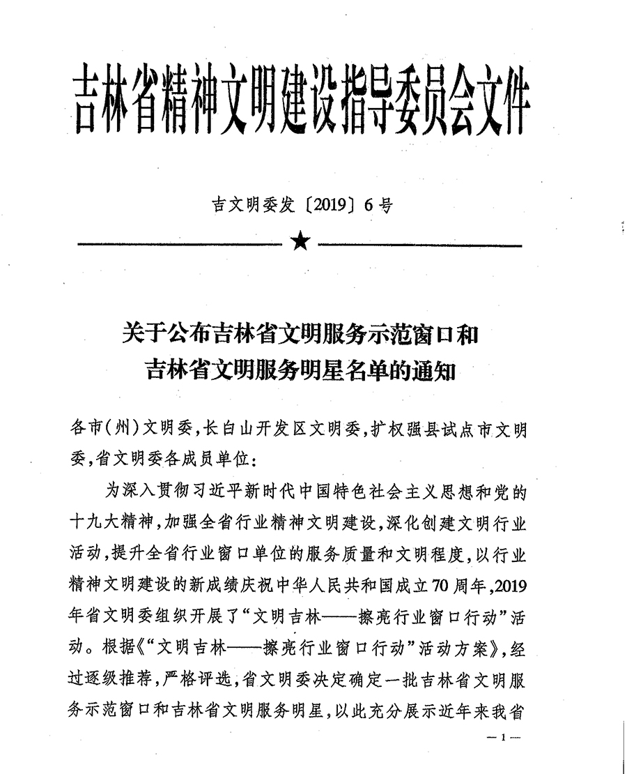 。今年被吉林省文明委评为“吉林省文明服务示范窗口”。
