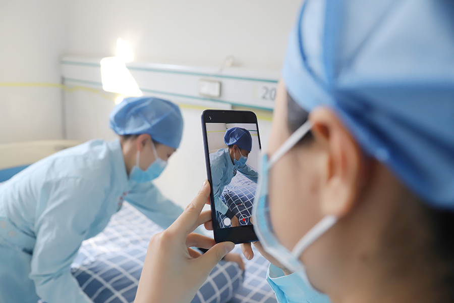 心理焦虑不仅出现在住院患者身上,即将出院的患者更为常见。张丽霞说,曾经有一位患者即将出院,心里却非常恐慌,担心出院后受到社会的歧视。“陈主任和我们几位护士都纷纷对他进行疏导,劝他不用担心,痊愈后即可回归社会。新冠肺炎只是比较陌生,但比起其他的疾病并没有多大区别。后来这名患者的心情才慢慢好转起来。”张丽霞说。