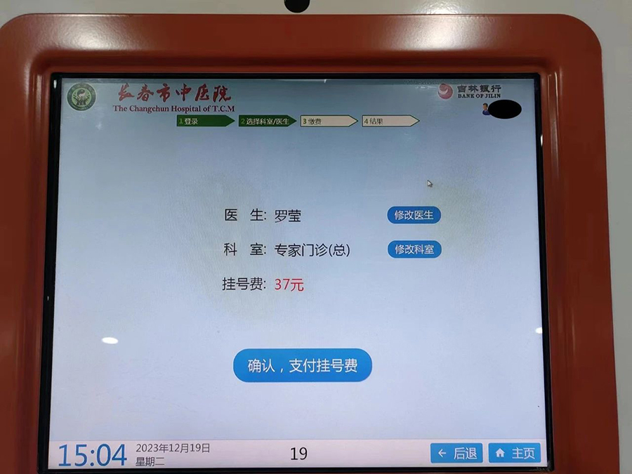 12.支付成功后,自助机会将挂号凭证打印出来,患者拿挂号凭证到门诊科室进行就诊