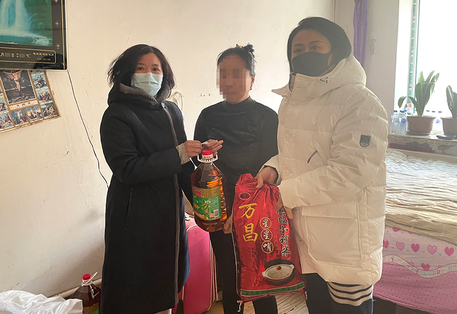 元旦将至,暖意融融。为贯彻落实以人民为中心的发展思想,进一步强化党史学习,积极开展“我为群众办实事”实践活动,真正把好事办实,把实事办好,12月28日,德州扑克平台网 疗区第一党支部书记朱莉、宣传委员党秀英与门诊第二党支部书记海德静、组织委员陈巍来到“一个支部帮一户”的帮扶对象家中,为帮扶对象送去了大米、白面和食用油等生活必需品。