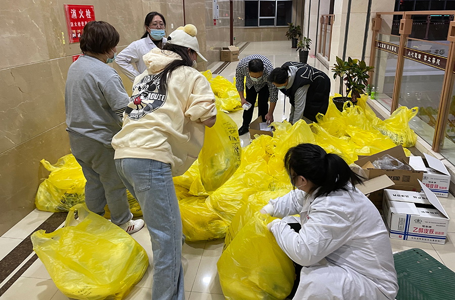 疫情之初,沙菲第一时间启动了护理团队疫情防控相关应急预案,调动全院护理人员成立护理应急梯队,开展应急技能培训与应急演练,提前策划、及早部署、精心准备。3月5日22时,按照上级指示,需紧急支援核酸采样工作。她组织护理部联合医务科连夜组建100人核酸采样救援队,与器械科、药剂科、总务科等科室筹备100人的防护物资,并打包封装……那一夜,她彻夜未眠。3月11日21时50分,再次接到成立第二批核酸采样救援队的通知。沙菲紧急调集人员、配备物资、协调上级主管部门、安排车辆......一直忙到凌晨3点钟,匆忙休息了1个小时后,又开始安排队员出发。在同事眼中,她总是果断利落,精力充沛,像不知疲倦永不停歇的“陀螺”。