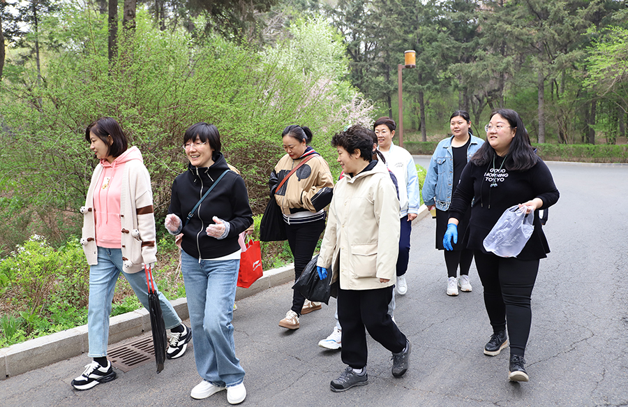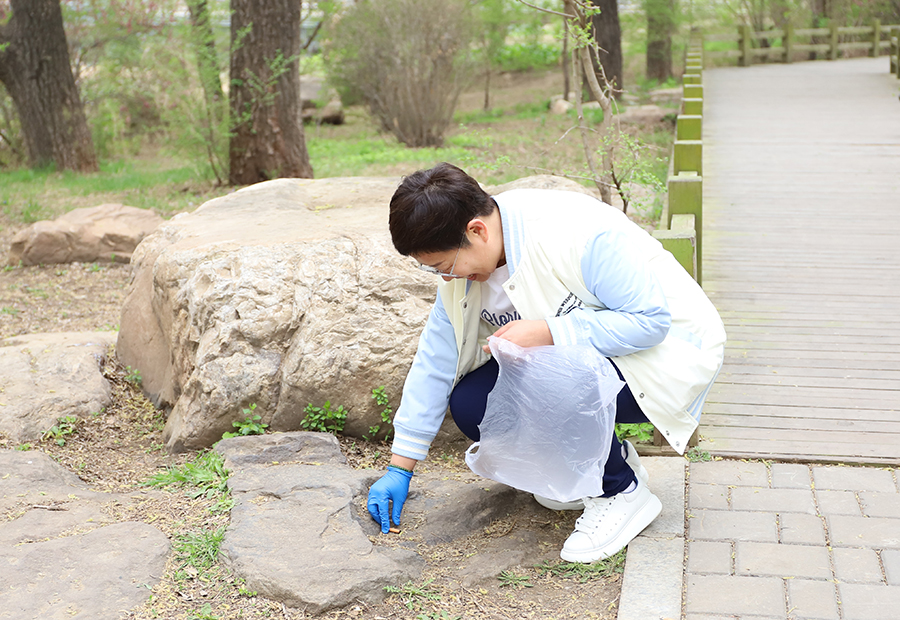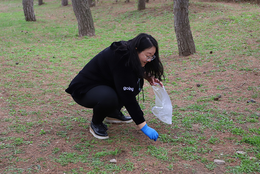 活动最后,党员团员们戴上手套,手持塑料袋,自发地参与到捡拾垃圾的环保志愿行动中,让这次活动更具深远意义。