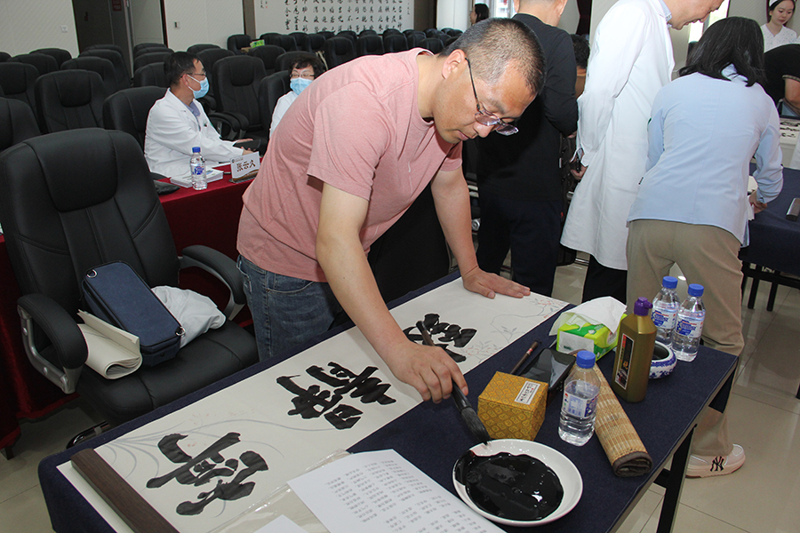 另一边,书画艺术家们正全神贯注地投入到创作中。他们或立或坐,或沉思或挥笔,在宣纸上用细腻的笔触映照出脑中灵感的火花,用书画作品描绘出杏林的生机与活力,将艺术的魅力与医务工作者的辛勤工作完美融合。随后,艺术家们亲手将作品赠予医护人员,传递着敬意与感激。艺术家们创作的书法、绘画作品,不仅是对市中德州扑克平台 全体人员辛勤工作的认可与鼓励,更是为德州扑克平台 70周年庆增添了浓厚的文化底蕴和艺术气息。这些作品将激励医护人员继续担当奉献,守护百姓健康,书写新时代医者荣光。