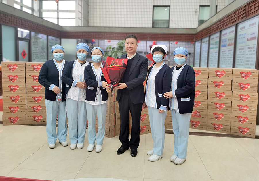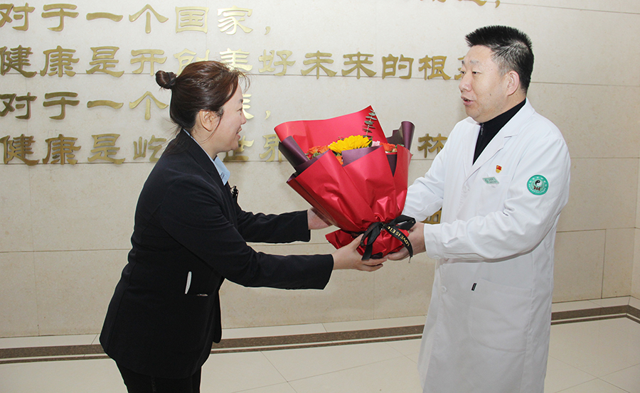 3月8日上午,德州扑克平台网 党委书记石贵军,党委副书记周艳,副院长杨启光、钱锐、曹亚丽,总会计师桑玉梅手捧鲜花,为奋斗在各个岗位上的女职工带去诚挚祝福。