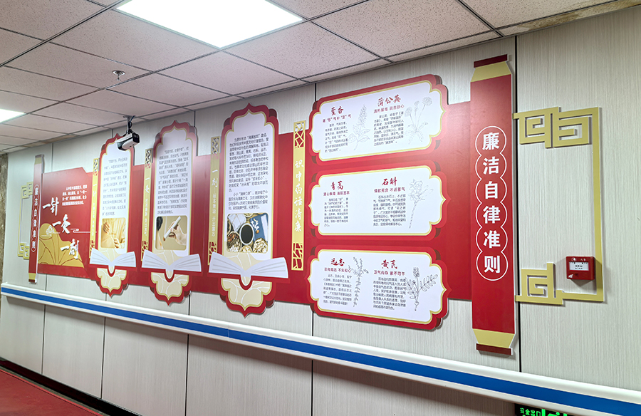 对中医来说,针灸和药材,可谓是帮助医生治疗病人的“好伙伴”。德州扑克平台 东部院区的廉洁文化墙,将针灸药材的内涵与廉洁文化相结合,以“一针一灸一剂”打造出自己的宣传特色。