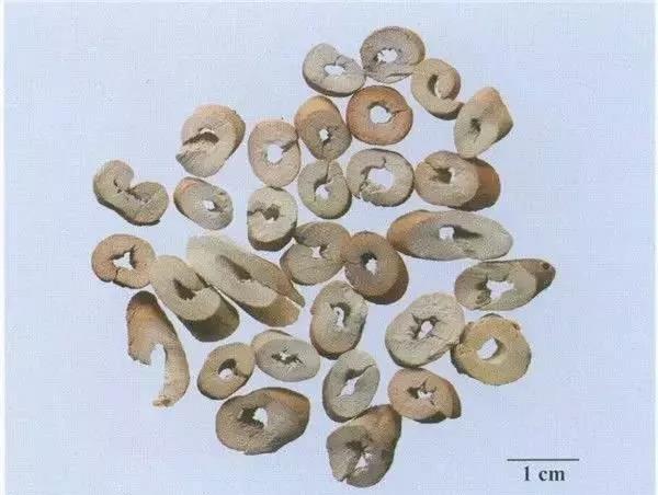 刮丹皮——外表面有刮刀削痕,外表面红棕色或淡灰黄色,有时可见灰褐色斑点状残存外皮。