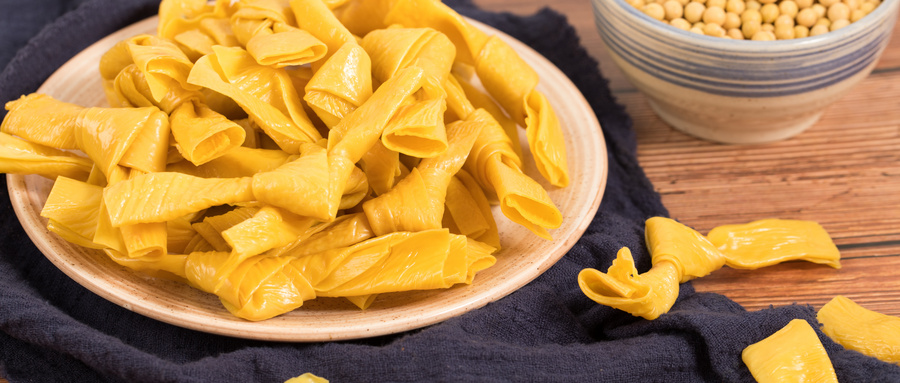 【原料】豆皮2张,植物油、食盐、葱、味精各适量。