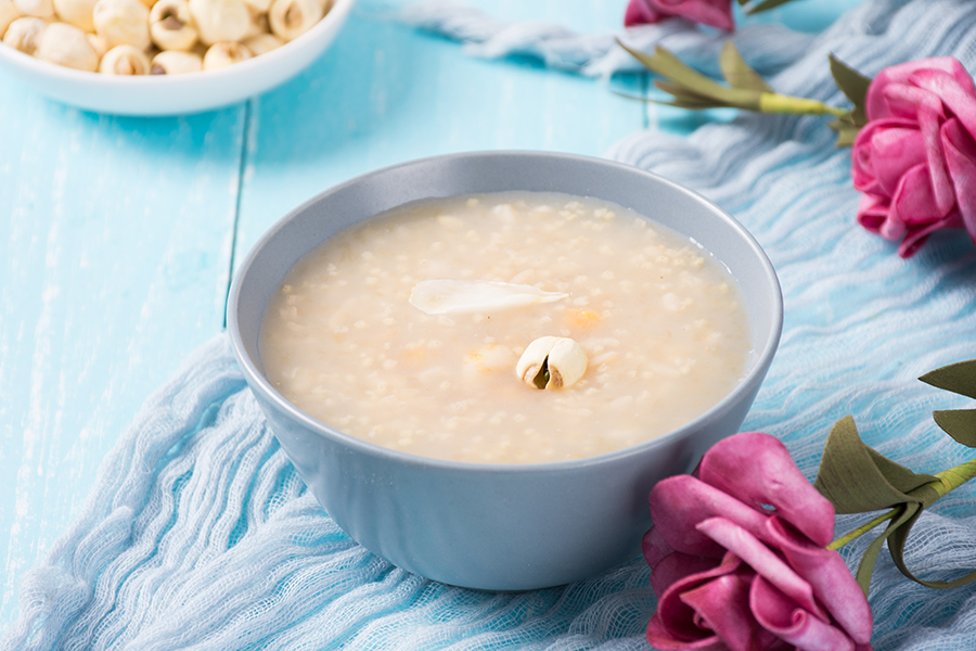 【做法】去皮杏仁和粳米同煮至熟烂,加入新鲜百合再煮10分钟,出锅前加入冰糖即可。