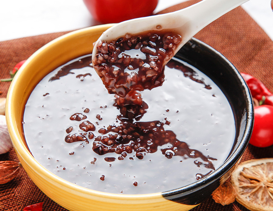 【做法】黑米淘洗干净,浸泡5小时;大米洗净,浸泡30分钟;红枣洗净、去核;枸杞子洗净。锅置火上,放入黑米、大米、红枣和适量清水,大火煮沸后转入小火熬煮成粥,再加入枸杞子煮5分钟,用白糖调味即可。