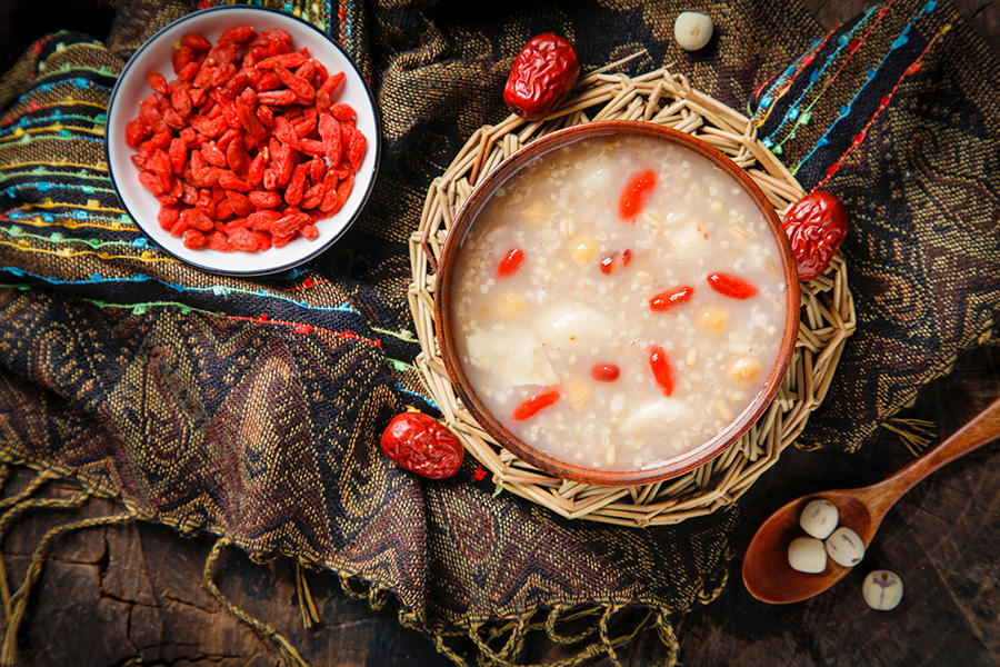 【做法】先将粳米熬成粥,起锅前将洗净的枸杞子放入锅内,再煮几分钟即可。