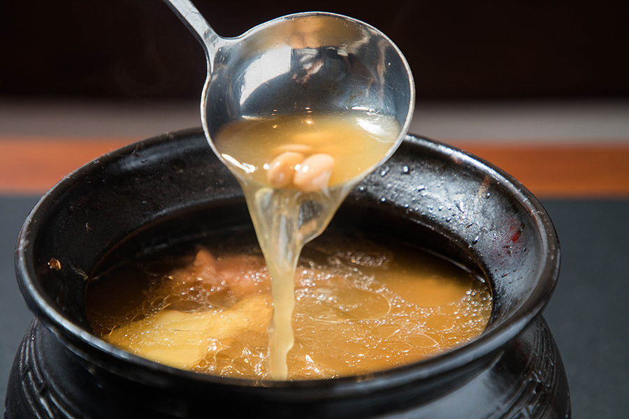 7.加入红枣、枸杞、花生,再炖一个半小时左右即可酥烂,出锅前撒上少许盐调味。