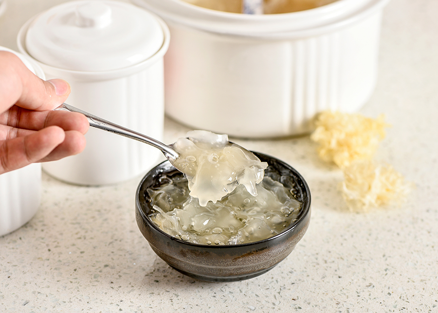 做法:将秋梨洗净去核切小块,加入水发银耳及百合、冰糖,放入碗中蒸1小时后食用。