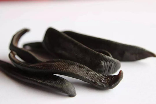 狭长而扁,长5~12cm,宽0.1~0.5cm。背腹两面均呈现黑棕色。