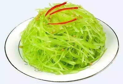 【材料】鲜莴笋350克,葱、香油、味精、盐、白糖各适量。