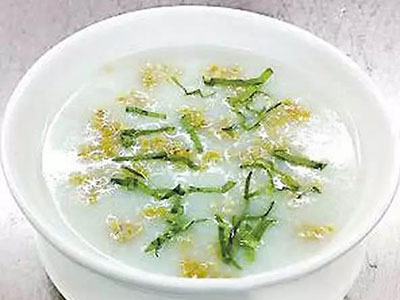 【做法】先将荷叶煎汤去渣,把茯苓、洗净的粳米或小米加入药汤中,同煮为粥,出锅前将白糖入锅。