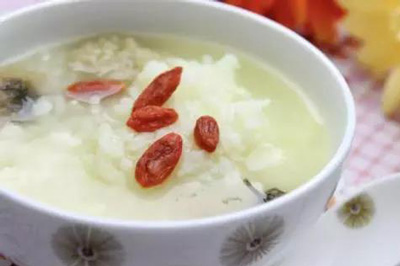 【做法】先将粳米熬成粥,起锅前将洗净的枸杞子放入锅内,再煮几分钟即可。