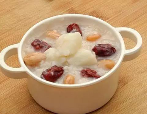 【做法】红枣洗净,大米淘净,山药去皮,洗净,切片;砂锅内放入大米、山药、红枣,加适量清水,大火烧沸,改小火煮25分钟;放入冰糖,搅匀即可。